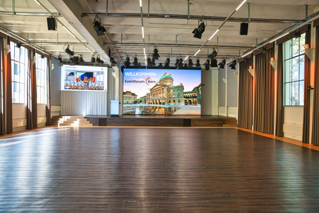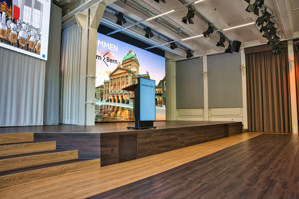 Raumhöhe: 5.40 m – ideal für Bühnenbau, Beleuchtung und Projektionen